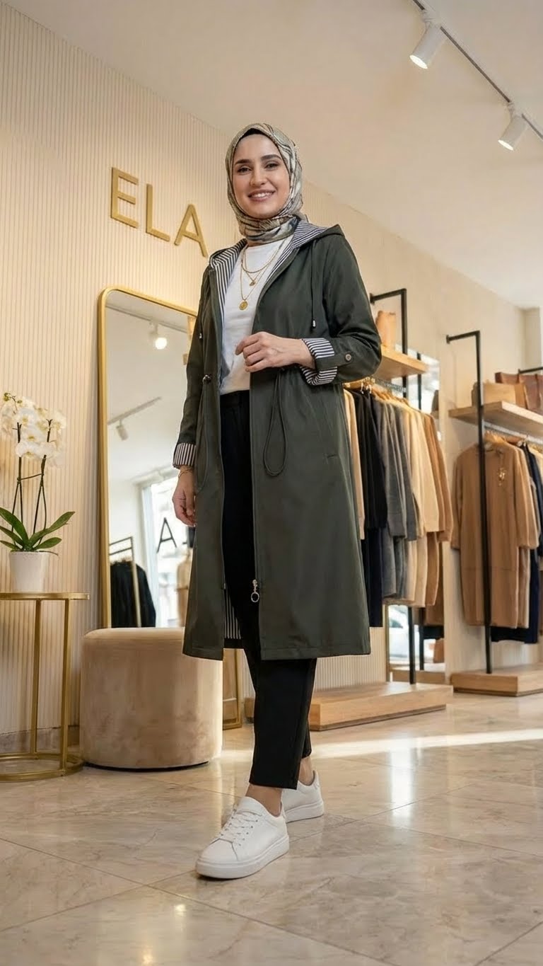 Haki Yeşil Spor Trençkot